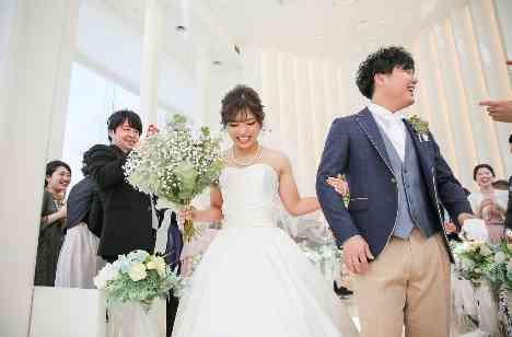 挙式は厳かなキリスト教会式をお選びになられたおふたり。真っ白なチャペルの中ご新婦様の素敵なお姿が現れたときはゲストの方も涙する場面も。ご新郎様も緊張の面持ちの中ゆったりと永遠の愛を誓われました。ブーケもかすみ草をふんだんに使用したドレスにぴったりなブーケでした!