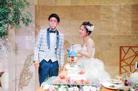 ウェディングケーキはおふたりのご希望を叶えたラプンツェルのウェディングケーキ!完成したケーキを目にした時のおふたりの表情はとても印象に残っております!そんなウェディングケーキでのファーストバイト。ご新郎様は巨大スプーンで思いっきりご新婦様の愛情を受け止めていただきました!顔中クリームまみれになったご新郎様をみたゲストの皆様からは笑いが起きました!