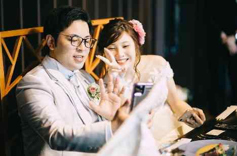 おふたりはコロナ禍でのご結婚式でございまして、新郎様のご列席の方の中には外国からお越しになる予定の方もいらっしゃいました。ただ、来日には間に合わず、リモートでのご列席となりました。挙式から披露宴の結びまでリモートでご参列をいただきおふたりも直接お話しをされており温かいお時間をお過ごしいただいておりました。