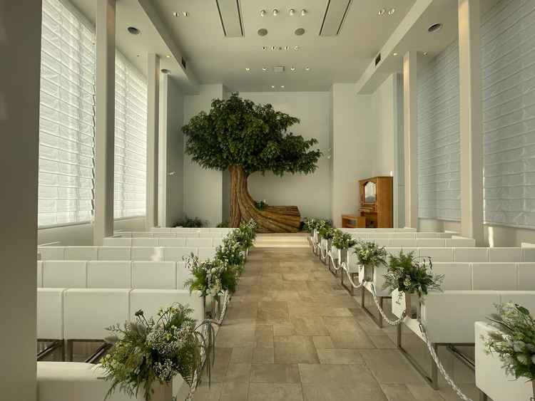 ベランダ付の親族控室があり、東山動植物園を眺めることができるためいいと思った。噴水やプロジェクションマッピングなど他ではなかなか見ない演出が可能だとおもった。