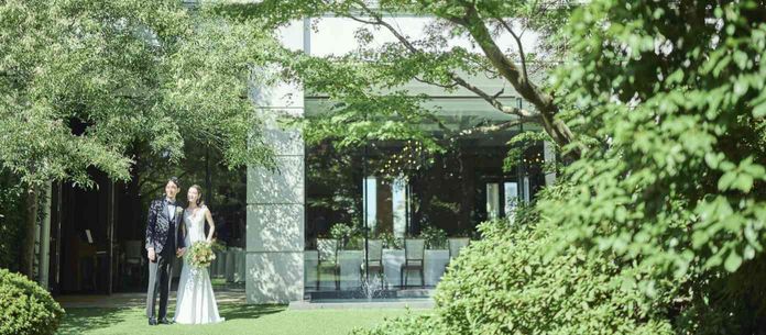 美しく豊かな緑が奥行きを見せる、オックスフォードガーデン邸。大きな2面採光の会場だから、明るく自然体な雰囲気を望むおふたりにもオススメ。シェフやサービススタッフが美食でゲストをもてなし、ゆっくりとした歓談のひと時を楽しむ大人ウエディングにもぴったりな空間。