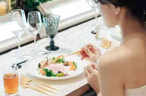 何度も打合せを重ねたお料理「ふたりが好きなレストランのコース料理をイメージした」という料理は、運ばれてきた瞬間からワクワクするようなメニューばかり。お皿を花で彩り、季節の野菜を取り入れた旬なフルコースでのおもてなしにゲストも大満足のようでした。アニヴェルセルで人気のデザートビュッフェは、ご新郎ご新婦のこだわりが光る演出のひとつです。今回、装飾は海外のマルシェ(市場)をイメージ。