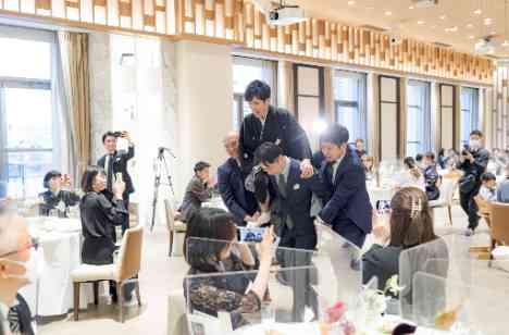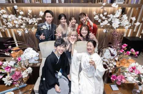 アットホームな雰囲気で笑顔あふれるパーティになさりたいとおっしゃっていたおふたりなのでお席はメインテーブルを外しチェアスタイルで用意をすることに。 当日はゲストとの距離も近まり、メインでの写真撮影も大盛上り! おふたりもとてもリラックスされた様子で終始笑顔でパーティを楽しまれていました。 そしておふたりがパーティーで一番大事にされていたことは、ゲストに【感謝】の気持ちをお伝えになること。