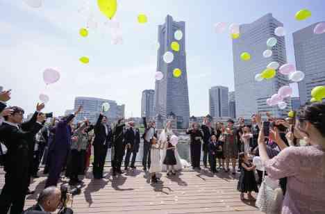おふたりの思い出の場所&新婦様の大好きな地元の「みなとみらいの中心地」で、バルーンリリースを行うことが憧れだったとのことです!日にちが近づくにつれて毎日天気予報にドキドキしながらおふたりで楽しみにされていたそうです。当日はすばらしい晴天の中バルーンリリースができて最高なワンシーンとなりました!バルーンのお色みは大切なゲストに選んでいただいたそうです。