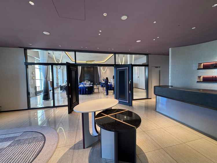 みなとみらいの海を目の前とした、開放的な雰囲気で明るく、ゲストも居心地良くひと時を過ごせるだろうなイメージできるものでした。