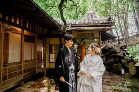 当日は動きやすいウエディングドレスで過ごしたいから、憧れの和装は、前撮り撮影で存分に楽しまれたおふたり。特別な場所をお借りして、白無垢と色打掛のお写真撮影を。最初はカメラに緊張されていたおふたりでしたが、途中からはいつも通りの笑顔が溢れて、とっても素敵な想い出に。春に前撮りして、秋の会食だったので、当日お写真も飾られました!