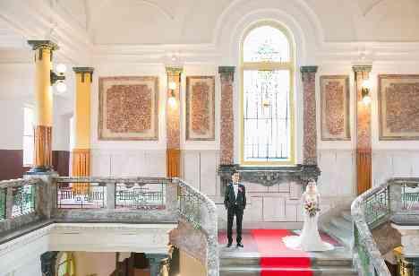 名古屋の貴重な文化遺産である「名古屋市市政資料館」は、大正11年に建設されたネオ・バロック様式のレンガ造りの建築物。歴史的背景と華やかな建築美を持つ重要文化財をウエディングステージに選ばれたおふたり。テーマに決めた「ヴィンテージ・アンティーク」にぴったりの場所でしたね。館内での記念撮影もいっぱい!挙式後にはフラワーシャワーでゲストとの一体感を感じられたのではないでしょうか。