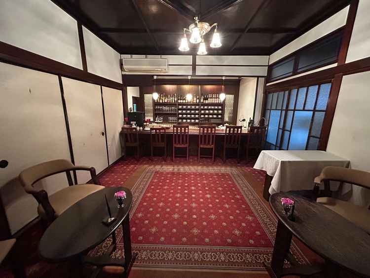古民家でレトロな雰囲気です。こういうお店や建物が好きな人は好みだと思います。出席者の待合室もカウンターでくつろげそうで素敵でした。