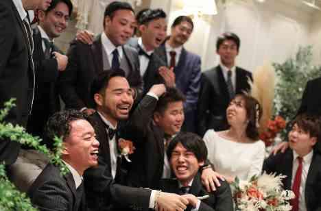 新郎新婦とゲストの距離が近いから、新郎新婦席には常にゲストの皆様で賑わっていました。 結婚式だからといって、緊張したり、変にかしこまったりするわけではなく、いい意味で”いつも通り”。 ご自身のお子様が、これだけ人に愛されている。友人に囲まれて笑顔になっているお二人をみて、親御様も感動されていらっしゃるようでした。