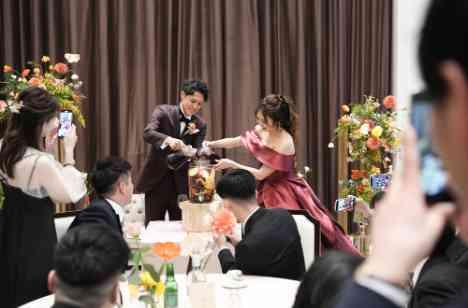 来てくださっているゲストのみんなと、なにか作りたい! お酒が好きな方が多いということで、ゲストにも協力してもらい完成させる、オリジナルサングリアをご提案! みなさまにフルーツをたくさん入れていただいたジャーの中に、最後は新郎新婦がワインを注ぎ入れます。 この日、お越しいただいた方しか味わえない、世界に一つだけの味となりました。