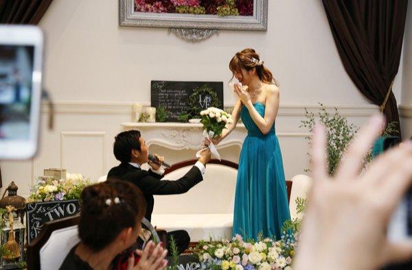 言えなかった想いをここで伝えられました。みんなの前で緊張もしたけど、普段言えない事を伝えられたし、こういう機会しかないのでやれて良かったです。温度感もあったまっている披露宴会場でサプライズは緊張もあるけどみんなの後押しも力になり、とても素敵なシーンになったと思います。貸切ならではのあたたかい空間はとても安心でした