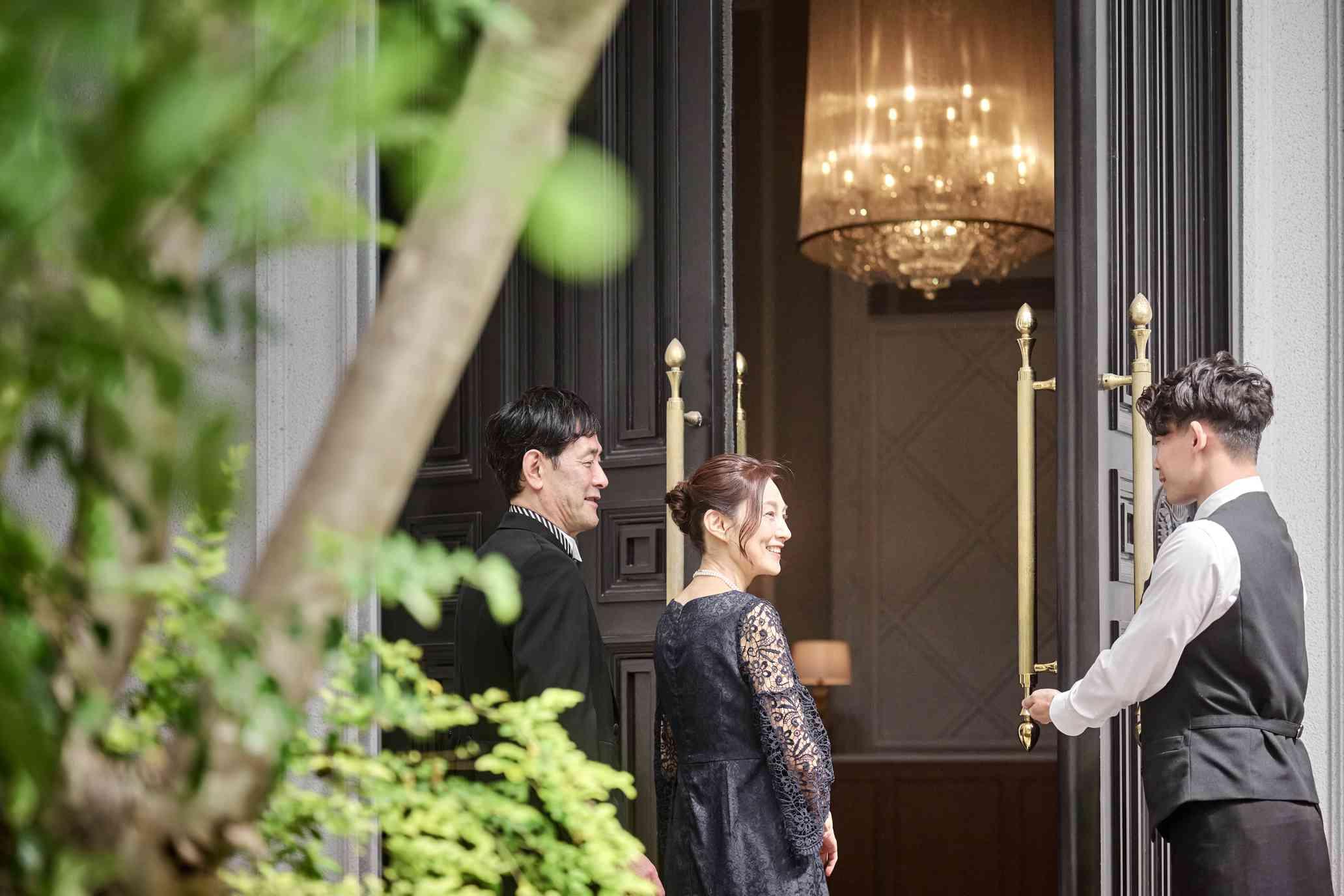 まるでお城のような外観。この一軒家が当日はお二人の邸宅になります。 門をくぐったところからお二人の貸切空間、ウェルカムカーも停めることができます。 左手にあるガゼボではドリンク片手にくつろげます。