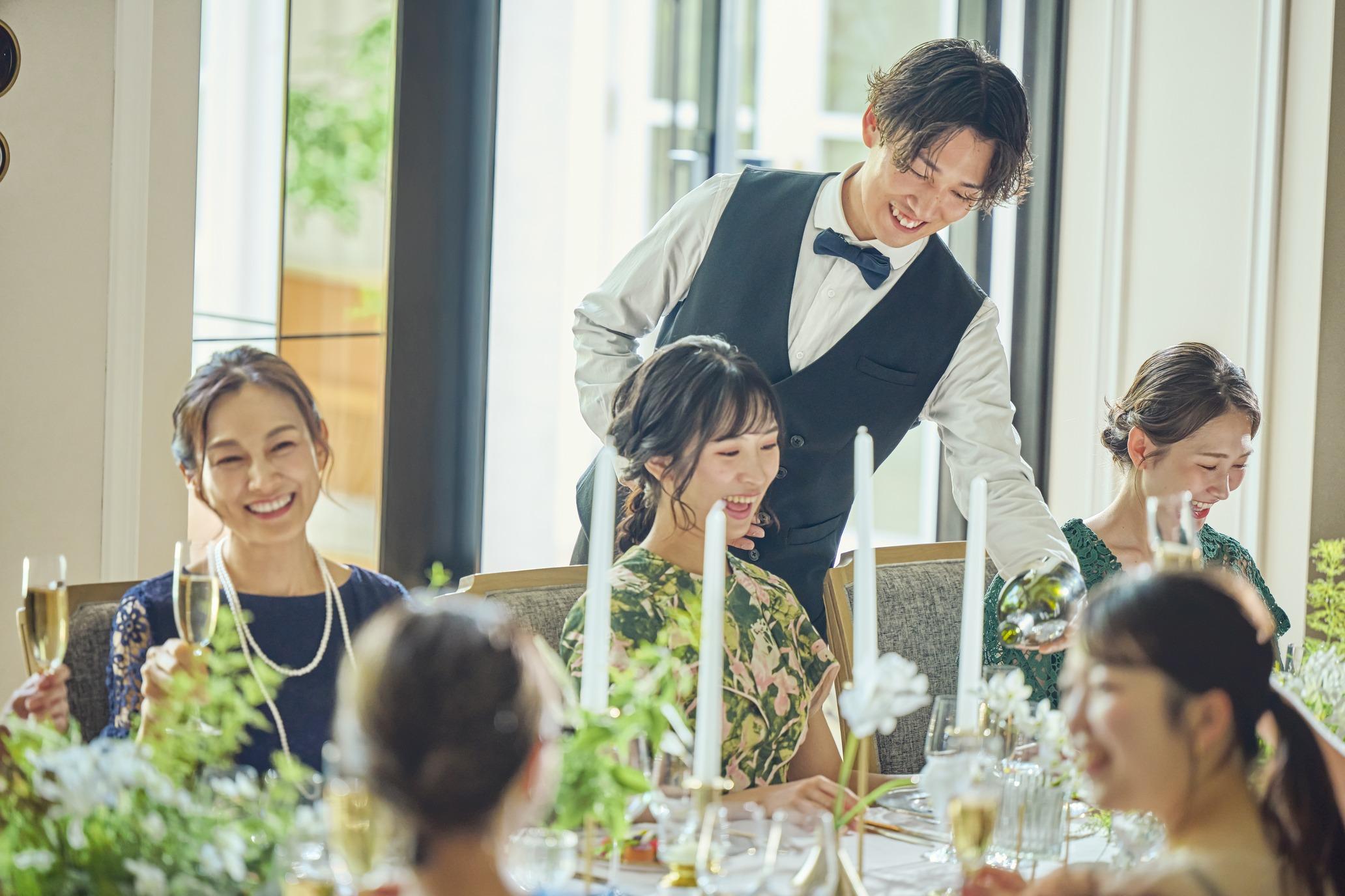 白を基調としたナチュラルクラシックな空間は、「おいしいお料理を堪能できる空間」。本当に親しい方をご招待して人生で最高の一日を過ごしたいと思う花嫁必見の少人数専用バンケット。