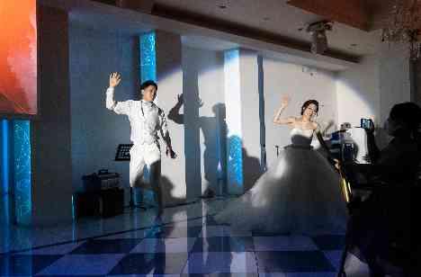 ゲストの人にも喜んでほしいと演出にクラップダンスを組み込んで、当日は二人で踊りました。来れなかった会社の人にも協力してもらい、映像も作成し上映しました。 余興ではサイリウムを使った演出があり、サプライズだったので驚いたのと共に会社の仲間の愛を感じました。また、サンクスバイトをして両親に感謝の気持ちを伝えました。