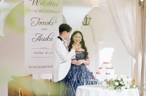 夜に水族館での挙式なため先に披露宴を執り行う振興に変更。まずはアンシェルデで披露宴、通常ウェディングドレスで行うファーストミートは先に披露宴のためカラードレスで。ガーデンで行うファーストバイトや親御様へのお手紙朗読など王道はもちろん、お色直しはカラードレスからウェディングドレスに衣装チェンジ!その姿のまま京都水族館へGO!
