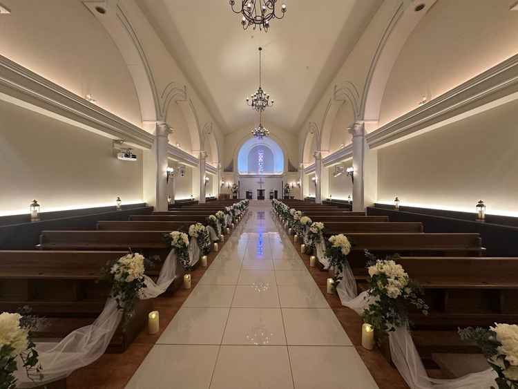 圧巻の挙式会場!バージンロードが長く洗礼された式場。憧れが詰まった式場 | アンシェルデ・マリアージュ