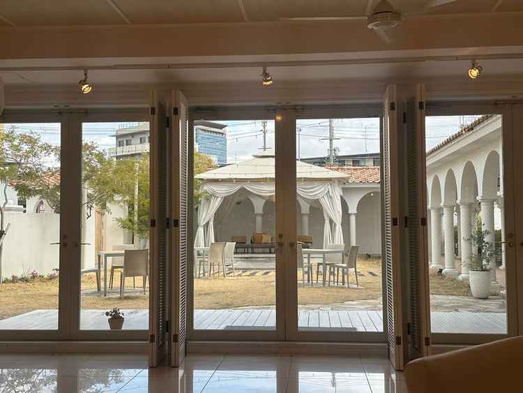 大きな式場、外階段、庭付きの披露宴会場と、憧れが詰まっていて良い。衣装合わせも同じ場所でできるのが便利。