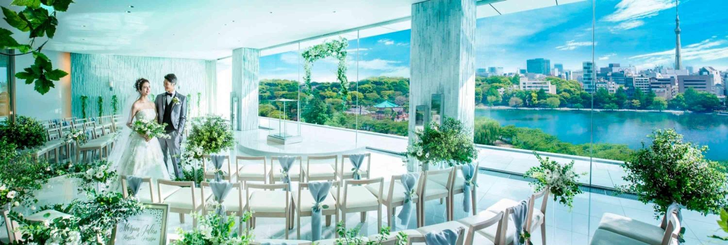 お二人がゲストと共に楽しみながらおもてなしする要素がたくさん!自然光が溢れ東京スカイツリーや上野公園を一望する開放的な会場や、スタイリッシュなバーカウンターを併設した遊び心をくすぐる会場など多彩に揃う