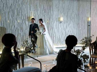 大きなガラスで ゲストと遮られた長いバージンロードは、『LUCIS』オリジナル。大切な方と1歩1歩歩むルーキスロードは、他にはない特別感を演出し、一生忘れられない瞬間となるはず。 音と光の演出も、感動が増す大人気の演出です。