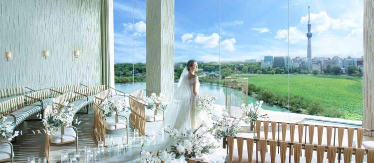 大きな窓から見える開放的な景色とを背景に、人気のチャペルフォトをお楽しみください。 四季折々の景観が楽しめる上野公園と、東京のランドマーク「東京スカイツリー」と一緒のショットは、LUCISでしか撮影できない特別なウェディングフォトです。