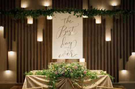 メインテーブルの背景にグリーンとタペストリーを吊るし、装花はグリーンを多めにして春の小花を少し散らしてもらい、「ナチュラルテイスト」にしました! 私がイメージしていた装花と少し違いましたが、とても可愛く仕上げてくださいました。 特別なことはしなくても「私らしく楽しい雰囲気だったね!」と言ってもらえて嬉しかったです!