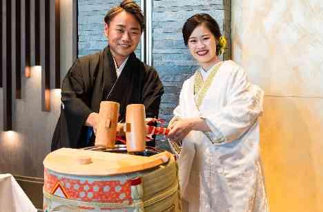 和装だったこともあり、ウェディングケーキではなく樽酒を用意し『鏡開き』をしました! ファーストバイトの代わりに、両手でやっと抱えられるほどの大きな盃でふたりそれぞれ日本酒を飲みほしたときには会場中から歓声が上がりました(笑) 私たち夫婦もですが、ゲストにもお酒好きの方が多かったのでやって良かったです。