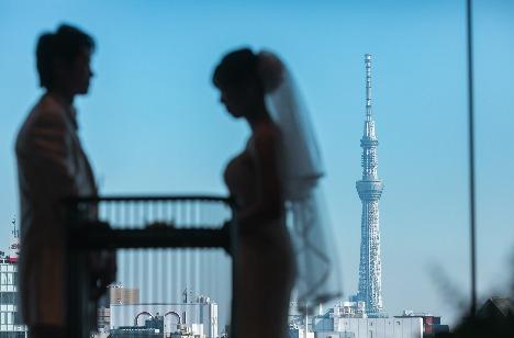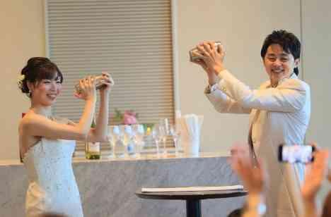 窓の面積が広い為、カーテンを開けると自然光が沢山入りパッと明るく、高砂から見て横長の会場だったので、1番遠い卓のゲストの顔もはっきりと見えます。 ゲストと同じ目線でゲストとの距離が近く、アットホームな雰囲気になる様に、参加型の演出をあえて取り入れました。 チャペル同様スカイツリーが見えて、遠方ゲストに観光気分を味わって頂けました。