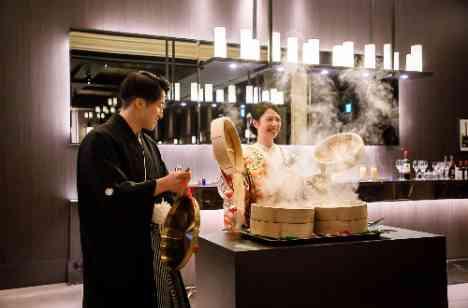 ケーキの代わりに『点心ビュッフェ』を行いました。自分達でセイロオープンする演出ができ、ケーキより盛り上がりました。 コース料理はシニア層まで食べやすい中国料理で、結婚式ではあまりないお箸だけで食べられるスタイルです。 点心も含めボリュームがあり、男性陣からも好評でした。味も、さすが歴史ある『東天紅』の料理だと感じました。