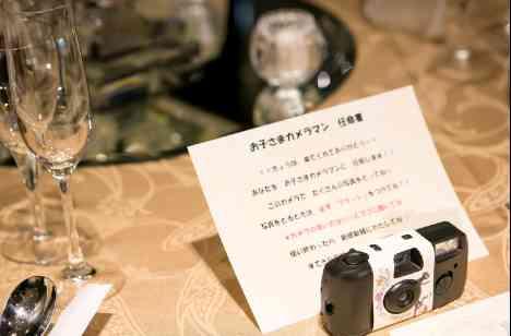 お仕事がとってもおいそがしいおふたり お時間を上手く作って、ひとつでも多く大人の方にもお子様にも楽しんでいただけるアイテムをおふたりでご準備いただきました 中でもお子様ゲストにはご披露宴中楽しんでいただけるよう、お子様カメラマン任命グッズをご準備いただいたり、ご披露宴の中でもご紹介したりとおふたりならではのお子様へのご配慮が伝わるご用意をしていただきました