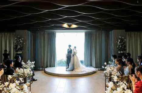 バージンロードを横から見る造りになっているため、一般的な縦長の挙式会場に比べて、写真に撮りやすいところが良かったです。会場自体も横幅が広く、ゲスト席が左右に広がって配置されているため、より多くのゲストの顔を見ることができます。 私たちの挙式は昼過ぎでしたので、カーテンを開けると自然光が入り、とても綺麗でした。