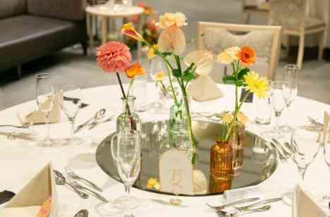 あえて余興の時間を短くし、フリーの時間を多めに取ることで、ゲストひとりひとりに感謝の気持ちを伝えられるように工夫しました。多幸感が感じられるよう、会場装花には鮮やかなカラーを取り入れたことで、会場がとても華やかになり、見ているだけで笑顔に! LUCISは、スカイツリーが見えることが決め手となって選びました。東京以外から来てくれるゲストが多かったので、より東京を感じてもらえたと思います。