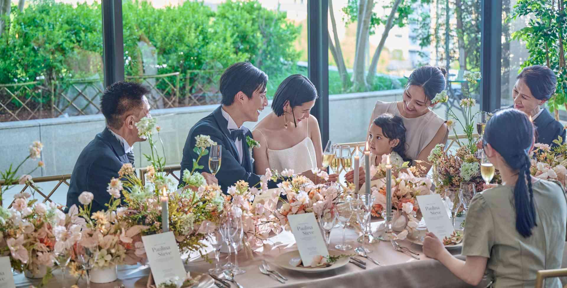 「感謝とおもてなし」をテーマに、ご両親・ご家族へ想いを伝える会食ウェディング。会話が弾むアットホームな空間で美食と心尽くしのサービスで特別な時間をお約束します。