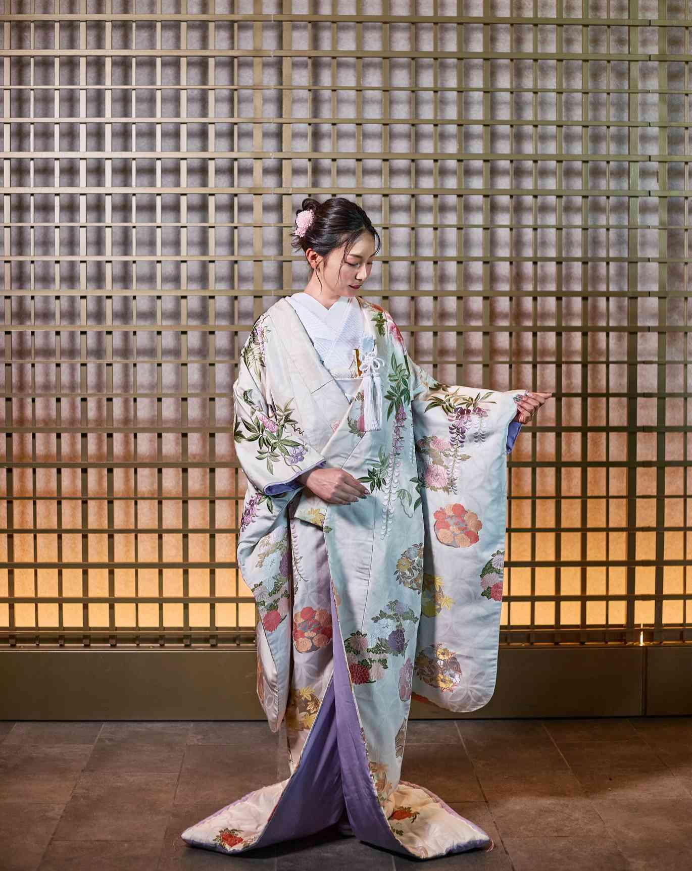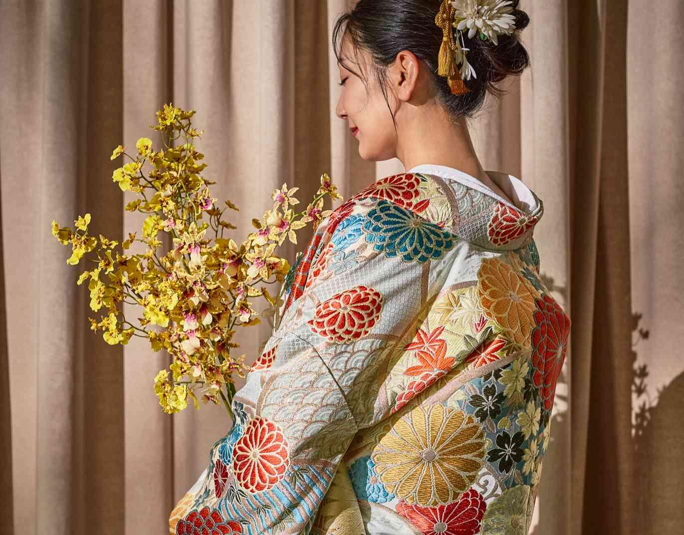 宗教色がないチャペルでは、ウェディングドレスはもちろんのこと、和装も似合う。さらに披露宴ではドレスを着ることもできるので一日で和装と洋装どっちも写真に納めることができ満足度120%