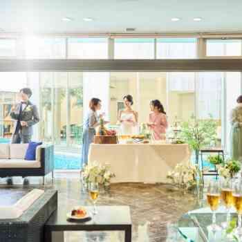 完全貸切で実現するおふたりらしさの最上級水と光と風を感じる開放的なパーティ会場でゲストも安心