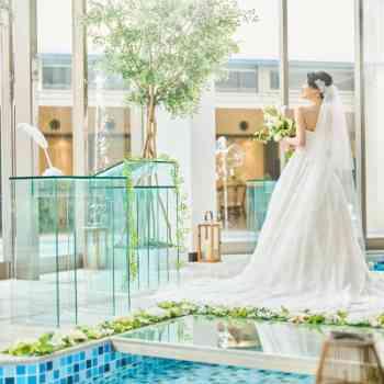 - 水の上に浮かぶようなガラスの空間にはお二人を祝福する噴水や溢れんばかりの自然光がしっかりと注ぎ込む