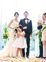 当式場のフラワーシャワーは、挙式本来の“誓い”にゲストの皆さまがお立ち会いいただくスタイル。あふれる光が降りそそぐスタイリッシュな空間で、今までにない感動の瞬間をお届けします。またブライダルシンガーの生歌で、挙式場は荘厳な雰囲気に。本格的な演出が新郎新婦の門出をお祝いします。