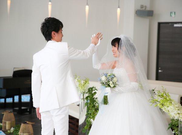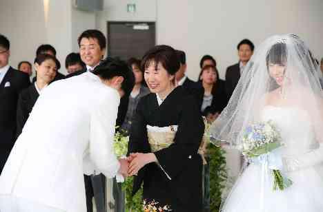 少しの緊張感と高揚感。厳かに進んでいく挙式の中にも、ゲストの皆様のおふたりを祝福する空気で心温まるセレモニーとなりました。お母様にエスコートをしていただきながら進む終始笑顔の新婦様。お母様から新郎様へのバトンタッチの際は、お母様と新婦様、思わずつられてしまいそうなそっくりの笑顔がふたつ。入場時には緊張で早足になってしまったという新郎様も退場時にはホッとしたような笑顔が見られました。