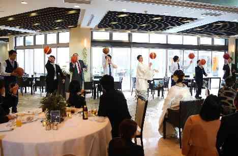 おふたりともにバスケットをやっていたということもあり、ゲストもバスケットの経験者がたくさん!当日はバスケットボールを使ったゲームを行いました!「この名前なんていうんだっけ~?」 どうしても名前が分からず、「地球まわしって命名しよう!」と笑いに溢れたお打合せにもなりました。みんなで行うゲームはもちろん大盛り上がり!ともに青春を過ごした仲間とタイムスリップをしたような気持ちになれました。