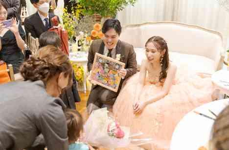 お二人がお色直しの間に…ゲスト皆様がメッセージを書いてくださり、それを集めてお二人へプレゼント!! お二人もメッセージを読まれて、とっても笑顔に。 その他、ゲストと触れ合う時間や演出も多く、和やかなパーティーとなりました。挙式の前からご家族へ感謝を伝えられ、感動と笑顔がいっぱいの素敵な結婚式でした。