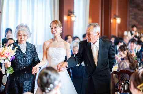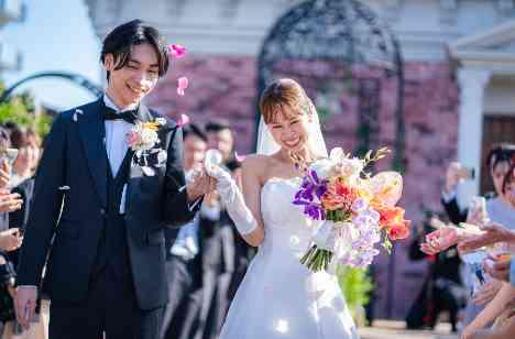 アンティークのステンドグラスや深紅のバージンロード、かぐわしい百合の花。別世界に足を踏み入れたような大聖堂での挙式は感動的。 御祈りの後に目を開けると広がっていたプラネタリウムの光景、退場時のフェザーシャワーはオリジナリティがあり、ゲストに好評でした。 開放的な青空の下でのフラワーシャワーも幸せいっぱい。
