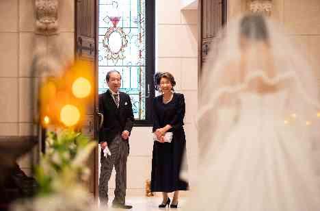 挙式が始まる前に、親御様とのファーストミート。ご新婦様の花嫁姿を見た親御様、新婦も涙されていました。そして、親御様にサプライズでフォトフレームをプレゼント。 今までの感謝の気持ちと、これからもずっと二人の娘だからねと、しっかりと想いを伝えました。