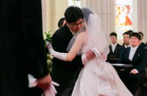 挙式は、全員の前で誓いを立てる人前式を選びました。 人生の道を表すバージンロードは、今まで育ててくれたお父さん、お母さんと3人で入場しました。これまでの出来事を思い出しながら歩き、たくさん助けられ、支えられ、いつでも味方でいてくれた事を改めて実感しました。 そんなお父さんとお母さんに今までの感謝の気持ちを込めてラストハグをしました。