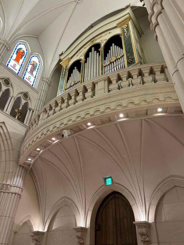 雰囲気は馬車道街を連想される、レンガ風の内装で大正ロマンもありつつ、最先端なチャペルという今と昔を合わせた感じ