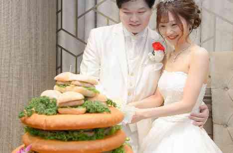 一般的なケーキ入刀ではなく違うことがしたい!ということで、「巨大ハンバーガー」にしたお二人。ファーストバイトもそのままハンバーガーの食べさせ合い。お口を大きく開けて幸せでお腹いっぱいにして頂きました。気取らない感じがお二人らしく、その後のゲストの皆様へのご提供も小さなハンバーガーにして大盛り上がりでした。