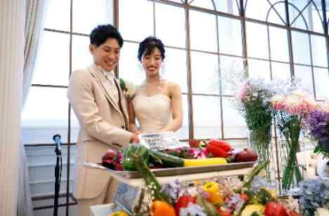 ウェディングケーキはなんとローストビーフ!! そしてケーキの装飾には色とりどりのお野菜が、飾られました♪ 新しいアイデアのケーキにゲストの皆様は驚かれました ! そしてケーキのプレートには 「お嫁さんにしてくれてありがとう」という感動のメッセージが、、、 素敵なケーキ入刃のセレモニーでした!