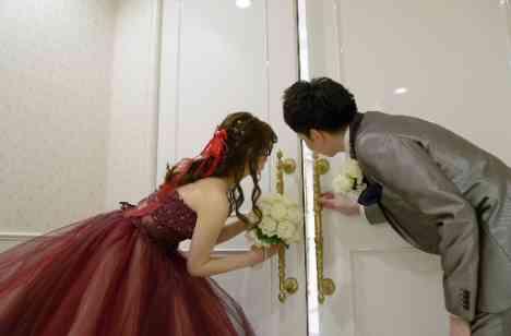 お2人が再入場される前の披露宴会場をこっそり覗く可愛いお2人♪ お2人がお色直しされるお部屋が披露宴会場の隣にあるからこそこっそり覗ける特権ですね♪ お色直しのお姿はとってもお似合いですね お2人がたくさん準備をされてきたからこそ素敵な結婚式でした ご結婚式の準備の期間は大変ですが本番当日は笑顔で楽しく過ごされていました、、!