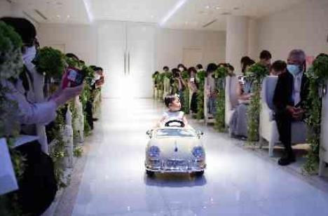 お2人の大切なお子様がミニカーに乗ってリングガールとして登場! お2人がミニカー操作のもと大切な指輪を届けました! リングガールの登場にゲストの方は『可愛い』とても盛り上がりました♪ ザ リュクス銀座ではミニカーのレンタルも行っております ぜひ大切なお子様やペットに大切な指輪届けてもらいませんか?