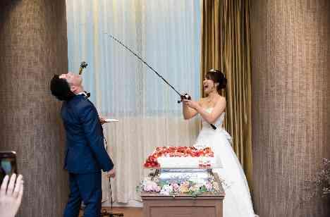 ご披露宴の人気演出のひとつであるファーストバイト! スプーンでファーストバイトされる方が多いですが、お2人は釣竿を使って行いました♪ そして釣竿の先についているのはなんとたい焼きです!! 珍しいファーストバイトにお2人はとても嬉しそうに行っているのが印象的でした ウェディングケーキだけでなく、アレンジいっぱいのセレモニーでした♪