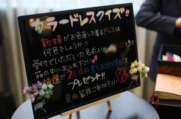 ご新婦様の着るドレスをゲストの皆様に考えて投票していただき、パーティーで当たった人にはお二人からプレゼントが!