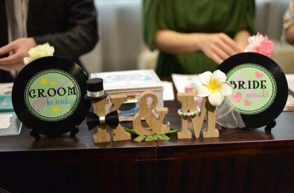 ディスクを使った「Groom&Bride」今日のライブウェディングにお越しいただいた皆様には、この特別ライブのチケットでご入場!それと引き換えに渡したエスコートピックも、テーマにぴったり☆